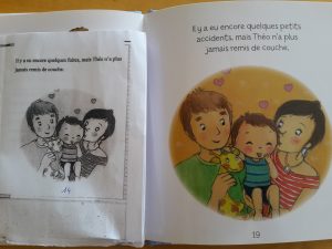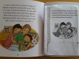 Voilà l’idée : (quelques pages du livre « non ! je ne veux pas le pot » chez Fleurus.)